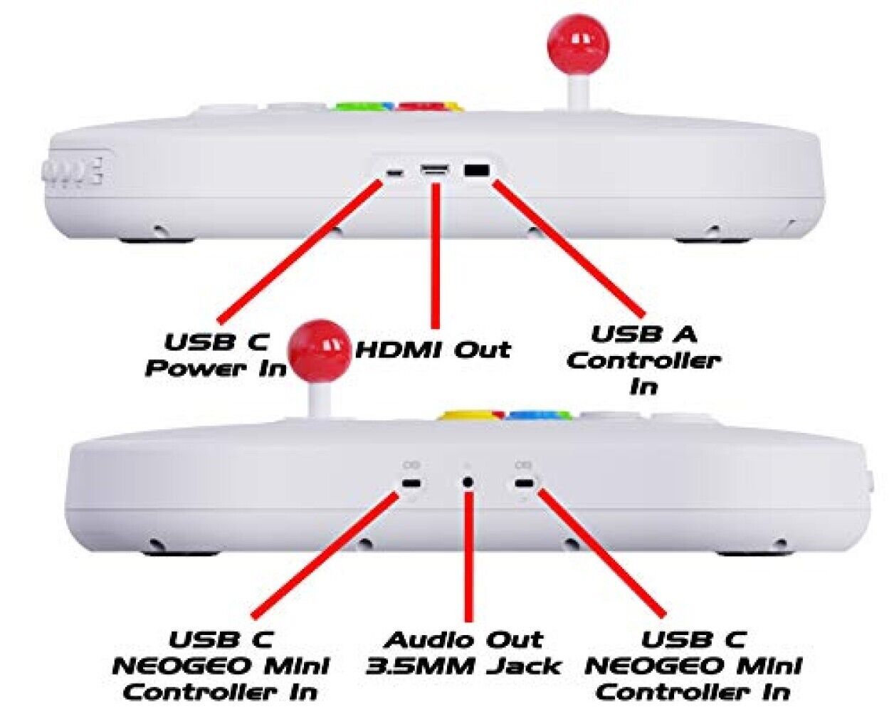 - En el modo Joystick podrás conectarla directamente a un PC o a una Neo Geo Mini y usar la consola como un Fightstick de calidad